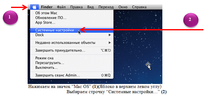 1. Нажимаем на значок «macOS» (яблоко в верхнем углу)