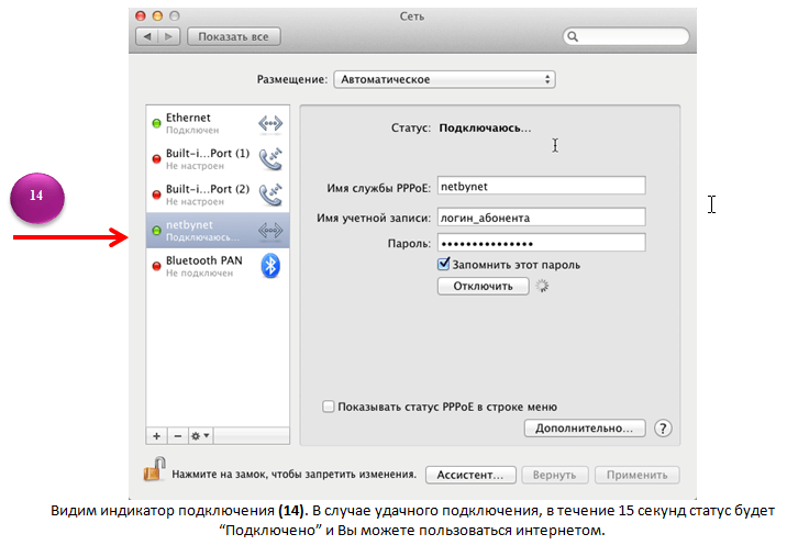 14. Видим индикатор подключения. В случае удачного подключения, в течении 15 секунд статус будет «Подключено» и вы можете пользоваться интернетом