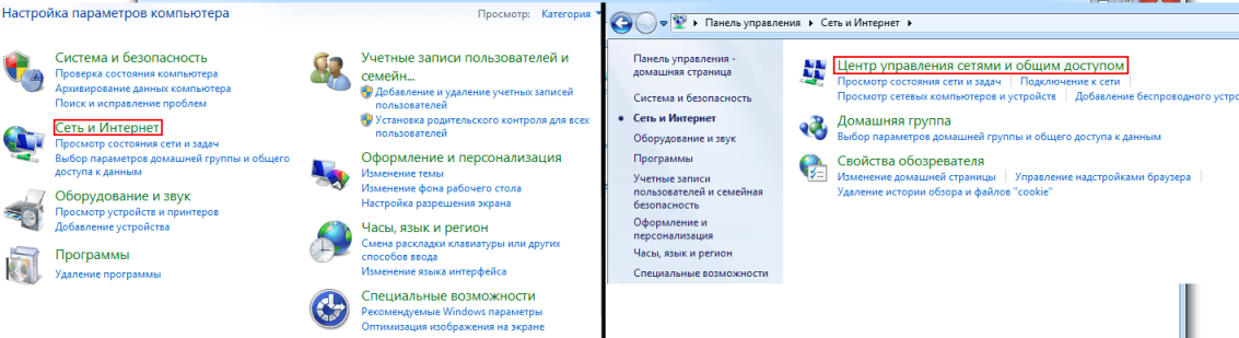 2. Если ярлыков в панели управления ~8, то «Сеть и интернет» → «Центр управления сетями и общим доступом».