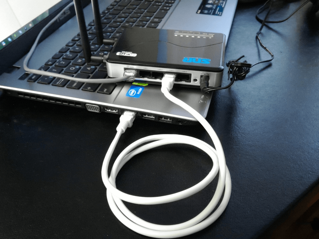 3. Подключаем роутер к компьютеру, удобным для вас способом: cоединяем кабелем (идет в комплекте с роутером) компьютер с роутером(любое гнездо от LAN1 до LAN4).