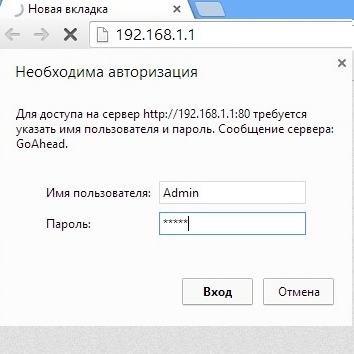 Теперь можно приступать к настройке. Открываем браузер и в адресной строке вводим http://192.168.1.1.