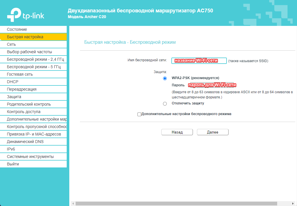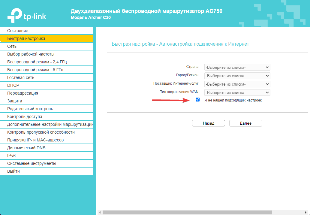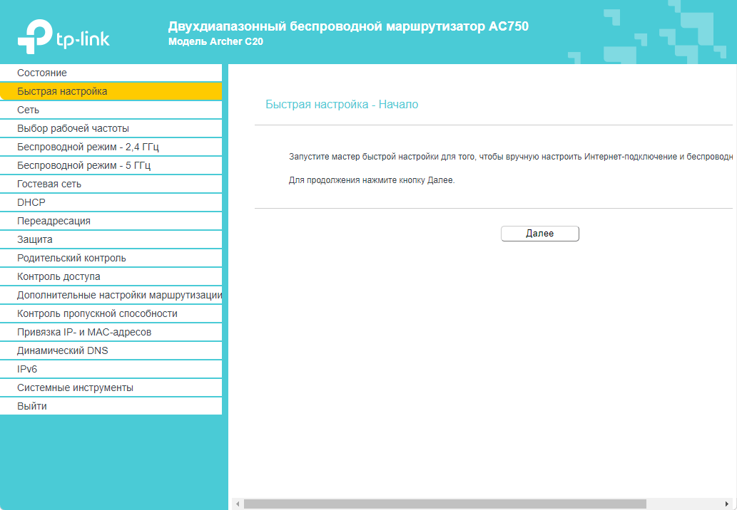 1. После успешного входа, выберите пункт «Быстрая настройка» и нажмите «Далее»
