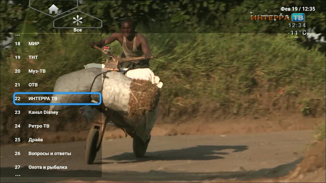 далее подгрузится список каналов, выбираем нужный и просматриваем. Для переключения на другой канал нажимаем на экран и снова выйдет список каналов