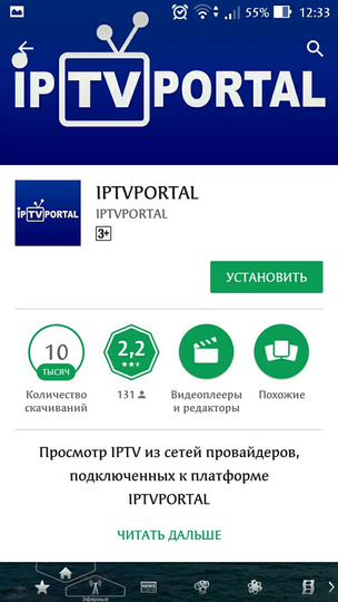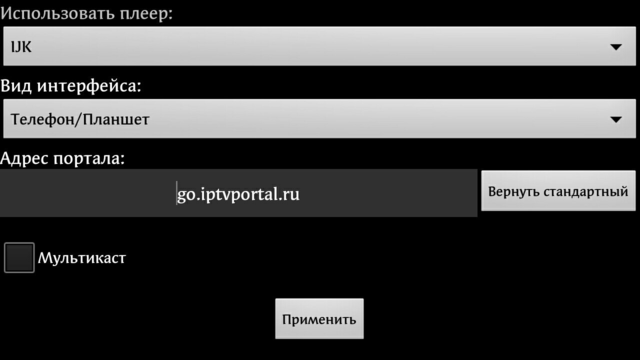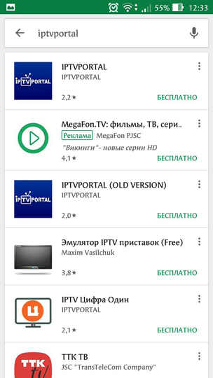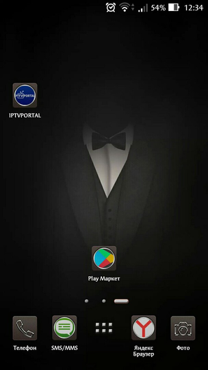 после установки, на главном экране появится ярлык IPTVPORTAL нажимаем на него
