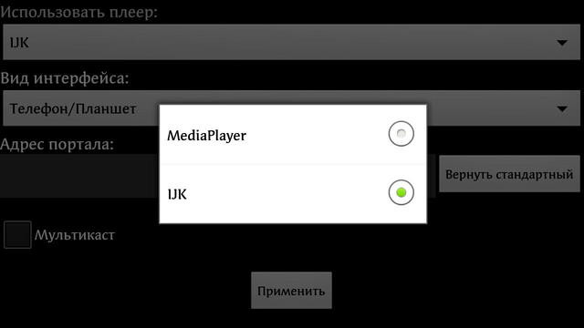 в первом пункте «Использовать плеер» выбираем второй пункт (IJK или Расширенный)